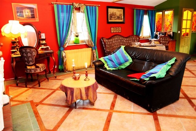 W pokojach łazienka , TV, radio- w 2 pokojach-kominek.
